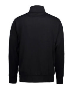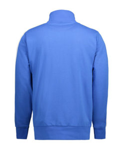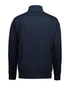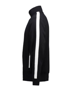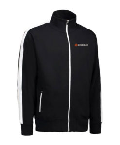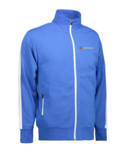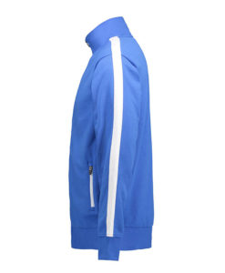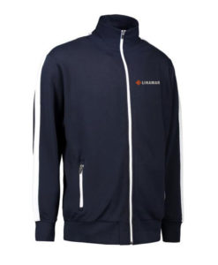 Sportliche Jacke in kräftiger Qualität mit Kontraststreifen an den Ärmeln. Durchgehender Reißverschluss und zwei Seitentaschen mit Reißverschluss in Kontrastfarbe. Nackenband, Nackenspiegel und Ripp an Ärmel und Bund. Unangeraute Innenseite.