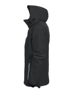 Modische Softshelljacke für Damen mit Flexdruck auf rechter Brust- und Rückseite. Als Ersatzprodukt für die MILFORD in Schwarz.